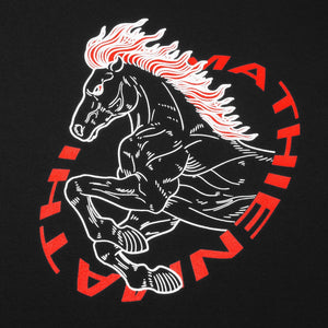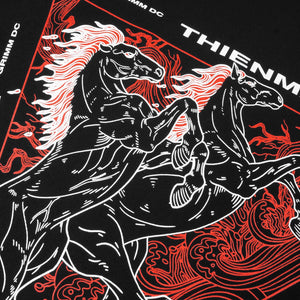 Lửa đỏ rèn vó sắtVũ tuyết nhuộm hồng maoVạn dặm tựa nháy mắtCưỡi đông phong thét gào.NGỰA - THIÊN MÃ/Thiên mã/: Thiên là trời, mã là ngựa. Thiên mã - ngựa trời.---Thông tin kỹ thuật:. Chất liệu: GRDC Standard™ Fabric: 94% cotton 6% spandex co dãn 4 chiều, ít nhăn, không xù, ít nhão, thấm hút tốt và mát mẻ, không tồn dư hóa chất gây ung thư, độ cầm màu cấp 4-5. Giặt máy thoải mái.. Giúp giảm đen da tối đa nhờ chất liệu vải chống tia UV (tia cực tím) lên đến 50+, tương đương với khả năng chống đến 98% tia UV gây hại. Tính năng đặc biệt này giúp hạn chế quá trình hình thành hắc tố melanin - sắc tố đen gây sẫm màu da.. Hình in: kéo lụa mực plastisol.. Box logo thêu tỉ mỉ và tinh tế.Thông tin thêm: Để bảo quản phần hoạ tiết này, khi giặt vui lòng lộn mặt trái, sử dụng túi giặt, cũng như không sử dụng chế độ sấy của máy. Khi giặt xong, hãy phơi lên ngay để tránh hình in bị tổn hại.