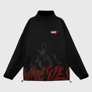 Model [1m73 - 60kg]. Áo size L.---Chẳng có nguồn cảm hứng nào sâu xa đằng sau thiết kế này. Đơn giản chỉ là chúng tôi muốn tạo ra một chiếc áo khoác rực cháy và “nóng” nhất có thể./Sin/: tội lỗi/City/: thành phố Welcome to Mah City.---Thông tin kỹ thuật:. Chất liệu vải: vải dù.. Hệ thống 4 túi: hai túi hông thường + 1 túi ẩn với dây khóa bên hông trái + 1 túi bí mật bên trong.. Toàn bộ dây khóa sử dụng YKK zip.. Cổ tay hai thành phần: thun co giãn - đảm bảo ôm vừa vặn mọi kích thước cổ tay.. Họa tiết in: in mực dầu.. Cụm Grimm DC ở mặt lưng được thêu tỉ mỉ và tinh tế.
