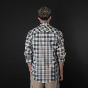 Model mặc đóng cúc [1m73-73kg]. Áo size L.Model mặc khoác ngoài [1m80-65kg]. Áo size L.---Những điểm tuyệt vời bạn cần biết trước khi sở hữu:. Chất liệu: khaki cotton dày dặn, đứng form nhưng vẫn mịn màng, dễ chịu.. Giặt máy thoải mái. Vải chống nhăn.. Hoạ tiết caro trên đô áo được thiết kế xéo thay vì kẻ sọc truyền thống. Đẹp và thú vị.. Khớp sọc tuyệt đối ở đường nẹp áo (đường nút thân trước), hông, tay và cổ tay - kỹ thuật chỉ những chiếc áo cao cấp mới có.. Trang bị dây khử mùi của tập đoàn Shindo - Nhật Bản ở phần nách áo. Hiệu quả đến 30 lần giặt. Để anh em luôn đẹp và thơm trong mọi tình huống.. Nút áo đóng máy điện tử chắc chắn, màu sắc được lựa chọn kỹ lưỡng để hài hoà với từng mẫu áo.. Tag thương hiệu được may tinh tế ở cạnh túi. Mặt trước: “Grimm DC” - bảo chứng cho chất lượng. Mặt sau: hoạ tiết iron flame.