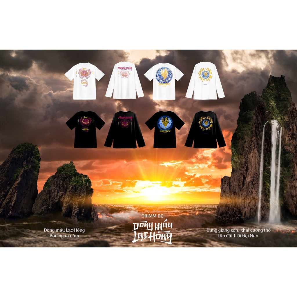 Dòng máu Lạc HồngBốn ngàn nămDựng giang sơn, khai cương thổLập đất trời Đại Nam.---Ban đầu, chúng tôi định sẽ viết gì đó thật chi tiết. Chúng tôi muốn kể về hành trình thiết kế từ 2 năm trước, về những đêm dài mất ngủ, cố vắt óc để sáng tạo từng chút một, về quá trình sản xuất gian nan vất vả đến kiệt quệ của từng thành viên đội ngũ. Vì dự định là tạo ra một cái kết hoành tráng cho Con Rồng - Cháu Tiên.Chúng tôi càng muốn kể về lí do tạo ra chuỗi thiết kế này, về cách mà Grimm DC tìm về cội nguồn, về cha Rồng - mẹ Tiên. Và về sự sung sướng khi cuối cùng đã chỉ ra được sự khác nhau giữa Rồng của tổ tiên người Việt với các Rồng của thế giới.Tôi đã viết rất nhiều.Tôi cũng đã xoá rất nhiều.Tôi chẳng thể hài lòng với những gì mình kể ra.Bây giờ, khi mọi thứ đã sẵn sàng để phát hành. Tôi hít một hơi thật sâu, xoá thêm một lần nữa, và chợt nhận ra...Con Rồng - Cháu Tiên chưa bao giờ có bắt đầu, càng chưa bao giờ là kết thúc. Suốt hàng ngàn năm lịch sử của dân tộc, dù trải qua thảm cảnh nước mất, nhà tan, nô dịch hay diệt chủng, thì cội nguồn của dân tộc này - nguồn sống của dân tộc này chưa bao giờ bị quên lãng.Nó có thể mạnh mẽ, cũng có khi le lói như lụi tàn. Nhưng suốt bao thế hệ, được nuôi dưỡng qua từng câu chuyện kể bên giường, hay nơi viên gạch giữa hoang tàn di tích, nguồn cội của cha ông, huyết mạch của tổ tiên vẫn cuồn cuộn chảy bất tận.Có thể chẳng cần đến Grimm DC, hay bộ sưu tập này, chẳng cần sự bắt đầu hay cái kết mà chúng tôi tự gán sau 3 năm thực hiện. Không có chúng tôi, gốc tích dân tộc này chưa bao giờ bị phai mờ. Không cần những thiết kế này, con cháu người Việt vẫn biết ông cha mình là nòi giống Rồng - Tiên.Suốt ngàn năm lịch sử với bao thăng trầm, 3 năm mà Grimm DC vừa trải qua chỉ như một cái chớp mắt, nên chẳng thể bảo là thiết kế này "khép lại" hay "kết thúc" cả.Chúng tôi chỉ đơn giản có cái may mắn được là một ánh lửa nhỏ, góp thêm ánh sáng vào con đường vĩ đại dân tộc này đã và sẽ luôn đi.Chúng tôi thực hiện bộ sưu tập này, không phải để "thức tỉnh" hay "dạy dỗ" bất kì ai, mà đơn giản là kể về niềm tự hào, về hạnh phúc thuần tuý của những đứa con được đắm mình trong cái rực rỡ của nguồn cội.Được thấy, được cảm nhận cái to lớn của cha ông. Được nghe cỗ máu nóng rần rần trong huyết quản. Được nhìn từ những bước đầu khai sơn lập quốc, đến lúc hùng cường và rộng lớn của hôm nay.Xin tạ ơn trời đất, vì được sinh ra là con của một dân tộc kiêu hùng.Xin tạ ơn trời đất, vì được mang trong mình dòng máu Lạc Hồng.Xin tạ ơn trời đất, vì được là Con Rồng - Cháu Tiên.---Thông tin kỹ thuật:- Vải thun dệt theo kĩ thuật Knit Jersey với thành phần cotton 94% đan 6% sợi spandex, giúp thấm hút tốt, đứng form, hạn chế nhăn và co dãn được 4 chiều.- Chống tia UV 50+, đồng nghĩa chống được 98% tia cực tím gây hại.- Không tồn dư hóa chất gây ung thư.- Độ bền màu với ánh sáng và giặt cấp 4-5.- Box logo: thêu- Chi tiết in: sử dụng kỹ thuật in lụa với mực plastisol.Thông tin thêm: Để bảo quản phần hoạ tiết này, khi giặt vui lòng lộn mặt trái, sử dụng túi giặt, cũng như không sử dụng chế độ sấy của máy. Khi giặt xong, hãy phơi lên ngay để tránh hình in bị tổn hại.