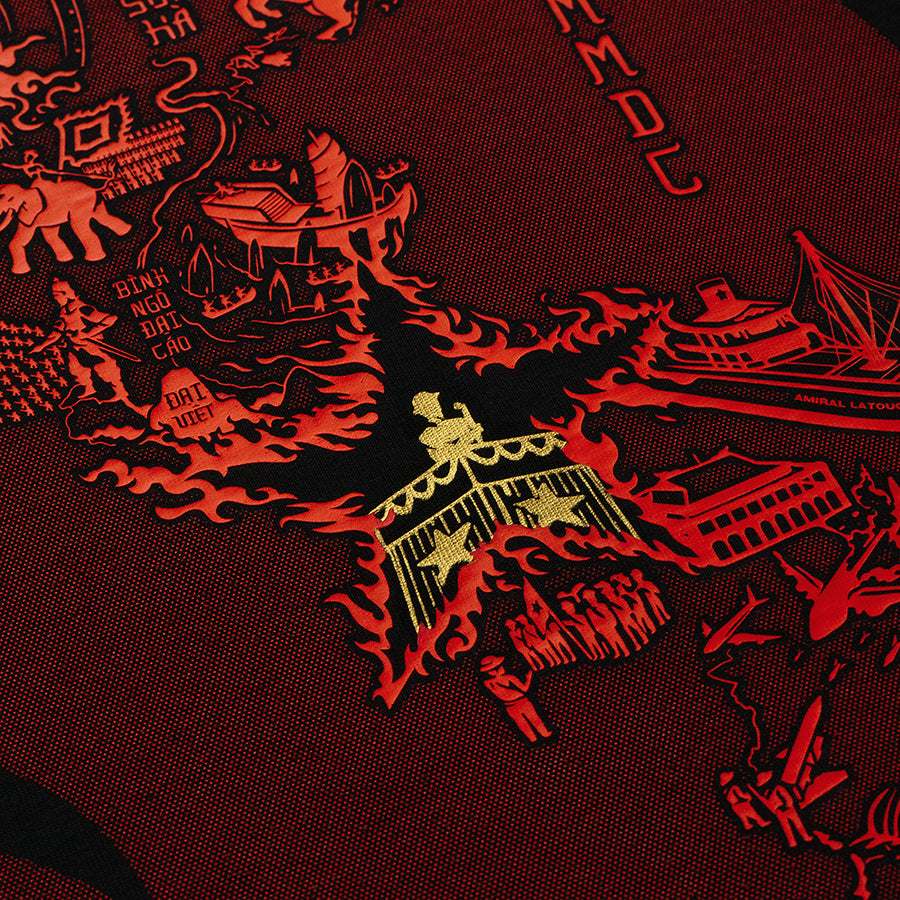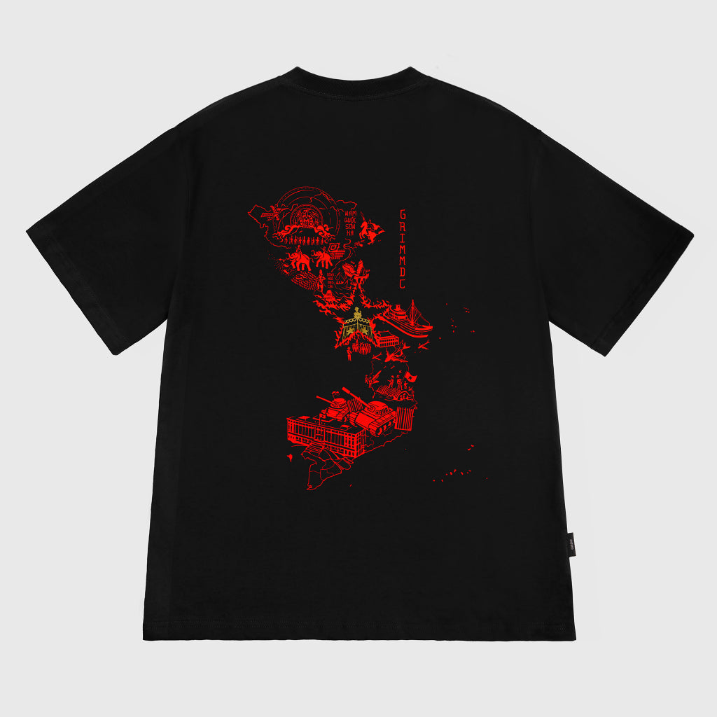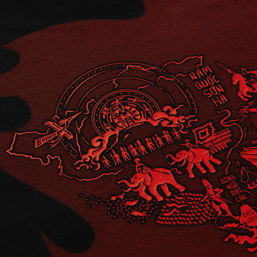 Thiết kế chính gồm 12 sự kiện lịch sử mà chúng tôi thấy rằng có ảnh hưởng to lớn và quan trọng đến Tổ Quốc. Từ những ngày đầu khai cương lập thổ, đến ngàn năm vùng lên chống lại ách đô hộ, tiếp nối bởi những chiến công tạo dựng giang sơn, và quyết tâm sắt đá giữ vững độc lập, bảo vệ sự toàn vẹn lãnh thổ đến tận ngày nay của trăm triệu tổ tiên người Việt.Cuối cùng thì, tất cả chúng ta đều là con cháu của một dân tộc anh hùng và kiêu hãnh.Và dòng máu chảy trong huyết quản này, là dòng máu đỏ của một dân tộc da vàng can trường và mạnh mẽ.Chúng ta thật may mắn, khi được sinh ra trên dải đất chữ S kì diệu này.Đúng không các anh em khắp mọi miền đất nước?!Duy mong rằng đây sẽ là chiếc áo mà mỗi người con nước Việt đều sở hữu. Để luôn nhớ về nguồn cội. Và luôn ngẩng mặt cao đầu, bước tiếp con đường mà ông cha đã dùng cả cuộc đời mình để xây dựng.Như Bác đã nói:“Nước Việt Nam có quyền hưởng tự do và độc lập, và sự thật đã thành một nước tự do, độc lập. Toàn thể dân tộc Việt Nam quyết đem tất cả tinh thần và lực lượng, tính mạng và của cải để giữ vững quyền tự do, độc lập ấy.”----Thông tin kỹ thuật:. Chất liệu: GRDC™ Streetvibe Fabric: 100% cotton 2 chiều, định lượng 250 gsm, dày dặn, hầu như không chảy nhão, bo cổ bền bỉ, thấm hút cực tốt và mát mẻ. . Tuyệt đối không co rút, không chảy nhão, không dãn cổ. Thiết kế: in kéo lụa với công nghệ Thiết kế sống /live printing/. Hình thiết kế chính bền suốt vòng đời sản phẩm. GIẶT MÁY và SẤY thoải máiThông tin thêm: để sản phẩm đạt độ bền tốt nhất, chúng tôi khuyên bạn lộn mặt trái khi giặt và ủi, và sử dụng túi giặt.
