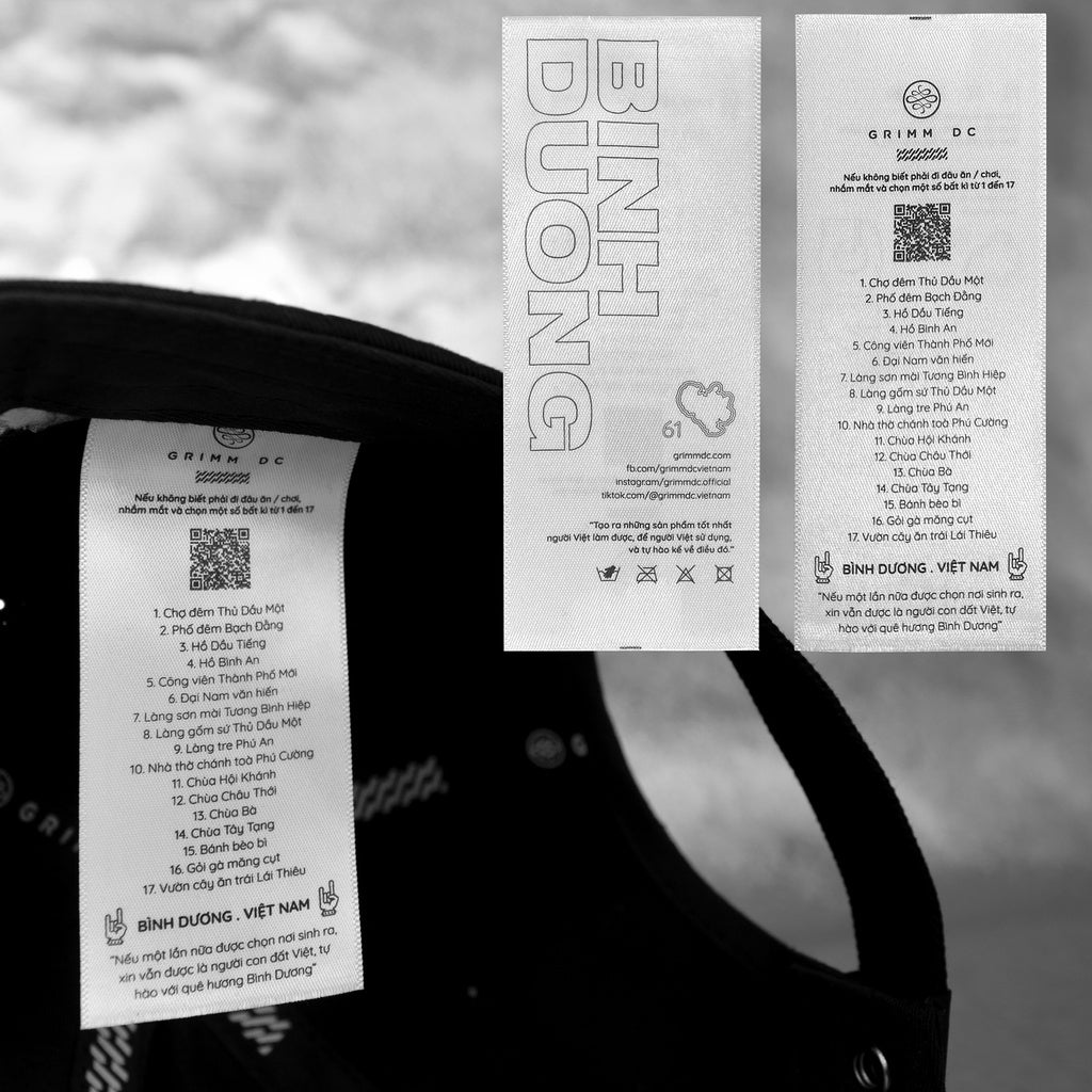 BINH DUONG HERITAGESMột mini collection với 2 sản phẩm là nón và áo để vinh danh niềm tự hào được là người Bình Dương, dành cho những người con của vùng đất 61 nổi tiếng, hay những ai đã trót xem đây như quê hương của mình.Điểm đặc biệt nhất của bộ sưu tập nhỏ này không nằm ở thiết kế, mà ở con tem gắn trong mỗi sản phẩm. Bạn sẽ dễ dàng nhận ra 17 địa điểm nổi tiếng nhất, cả ăn / chơi lẫn du lịch.Kèm theo đó là một game nhỏ thú vị: những khi không biết phải đi đâu cùng bạn bè hay người yêu, hãy yêu cầu người đi chung với mình nhắm mắt rồi chọn ngẫu nhiên một số từ 1 đến 17. Điểm có số tương ứng trên tem sẽ là nơi mọi người đến Một tiểu tiết khác mà chúng tôi cài cắm trong quá trình thiết kế, là bản đồ đường biên của tỉnh được đặt vào cạnh số 61 - cũng chính là danh số của riêng Bình Dương.Cuối cùng, chính là dòng chữ thêu trên tay áo: VIETMADE - nghĩa là người Việt làm, tại Việt Nam. Bên dưới là cách điệu lá cờ tổ quốc với hai màu đỏ - vàng.Chúng tôi thật sự mong rằng mọi người sẽ thích thú với món quà này, cũng như tình cảm chân thành - lời cảm ơn mà Grimm DC gửi gắm trong từng sản phẩm của "BINH DUONG HERITAGES"."Nếu một lần nữa được chọn nơi sinh ra, xin vẫn được là người con đất Việt, tự hào với quê hương Bình Dương"---Thông tin kỹ thuật:- Sử dụng vải cotton 14 với phối màu Deep Black.- Form nón Asia Standard 6 múi 57cm (± 3 cm) giúp ôm khít và tăng giảm dễ dàng với từng kiểu đầu người đội.