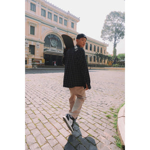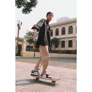 Mẫu nam 1m74 - 47kg. Quần size L. Áo size L.---/flex/:. Trong flexible: linh hoạt. Trong flexin’: show…lựcTuỳ anh em quyết ---Những lý do khiến anh em không nên bỏ lỡ chiếc quần này:. Chất liệu: 100% sợi tổng hợp Polyester với công nghệ dệt sợi dọc ATY và sợi ngang HIGH STRETCH, tạo ra độ bền lý tính vượt trội, cùng cảm giác trên da tương tự sợi Cotton tự nhiên.. Giặt máy thoải mái. ̉ ̂́ ̆.. Không bạc màu. Luôn đẹp như mới.. Co giãn cực tốt, mỏng nhưng không xuyên thấu, nhẹ nhưng vẫn đứng form, thấm hút mồ hôi tốt. Mặc đi đâu, làm gì cũng tiện: đi học, đi làm, đi trượt ván, đi chơi,... hoặc đi ngủ.. Đáy quần được gia cố chắc chắn, bao bung chỉ kể cả có xoạc ngang / té.. Quần có 4 túi thường được đánh bọ rất kỹ, kèm túi ẩn với khóa kéo YKK Nhật chính hãng, để điện thoại và những đồ quý giá luôn an toàn.. Phom quần suông và rộng. Trendy nhưng thoải mái.. Lưng thun mềm, co giãn tốt, có dây rút để điều chỉnh vừa với eo và không gây khó chịu.. “Grimm DC” thêu trên miệng túi sau. Bảo chứng cho chất lượng.